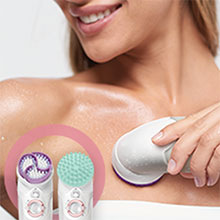2 peelingové kartáčky jsou až 9x účinnější než manuální peeling pokožky. Masážní polštářek hloubkově masíruje pokožku a stimuluje cirkulaci krve v podkoží. Výsledkem je lepší vzhled pokožky.