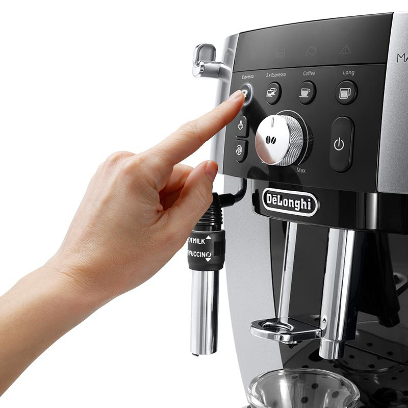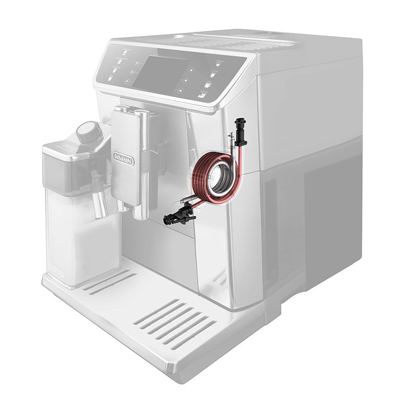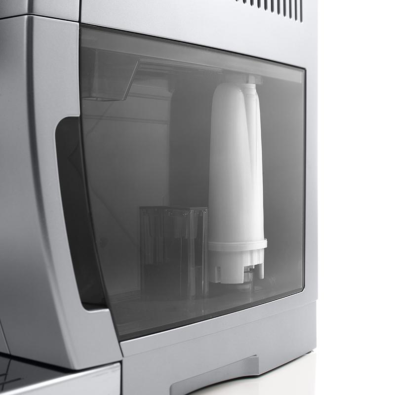 Nastavení tvrdosti vodySpecifickou vlastností kávovarů De’Longhi je možnost naprogramování tvrdosti používané vody. Na výběr jsou 4 stupně tvrdosti. Zároveň se doporučuje používání vodního filtru. Ten nejen předchází tvorbě vodního kamene v přístroji, ale také prodlužuje jeho životnost. Má také vliv na chuť a aroma kávy.