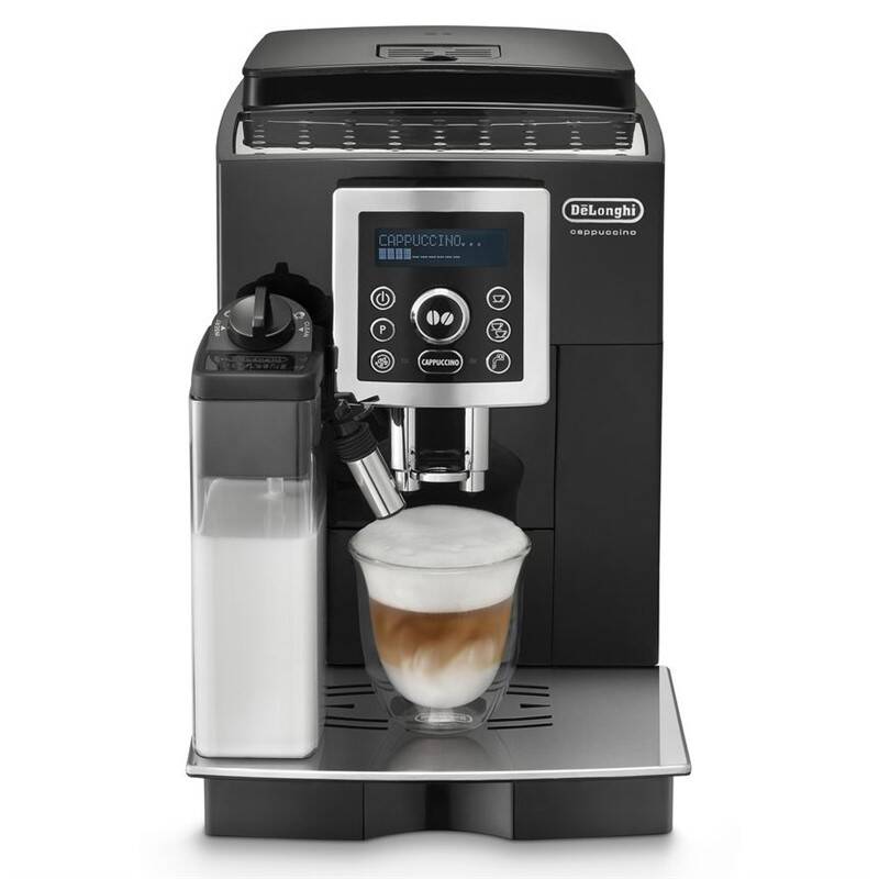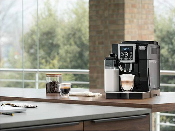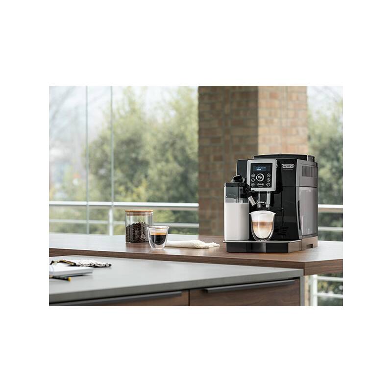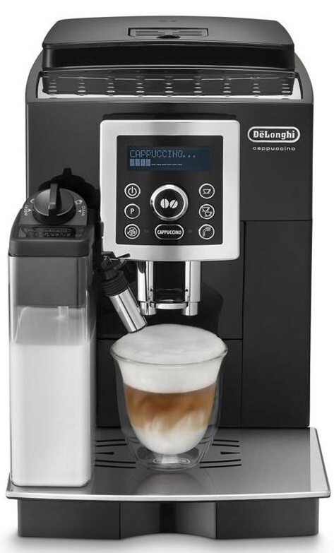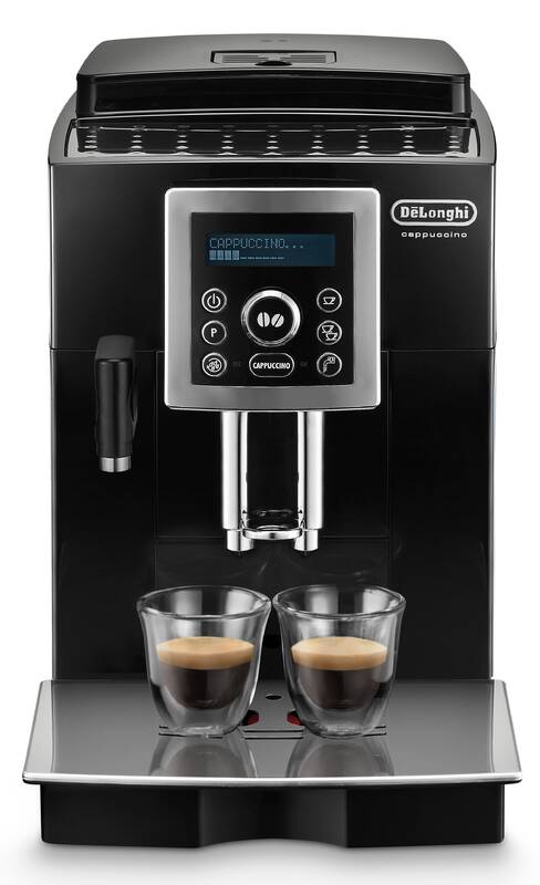automatické espresso • tlak 15 barů • 13 stupňů nastavení mletí • příkon 1 450 W • objem 1,8 l • příprava až 2 šálků • vodní filtr • funkce stand-by • nastavení aroma • De’Longhi LatteCrema systém • 250g zásobník na kávová zrna • LCD displej • časovač • automatické čištění • automatické vypnutí