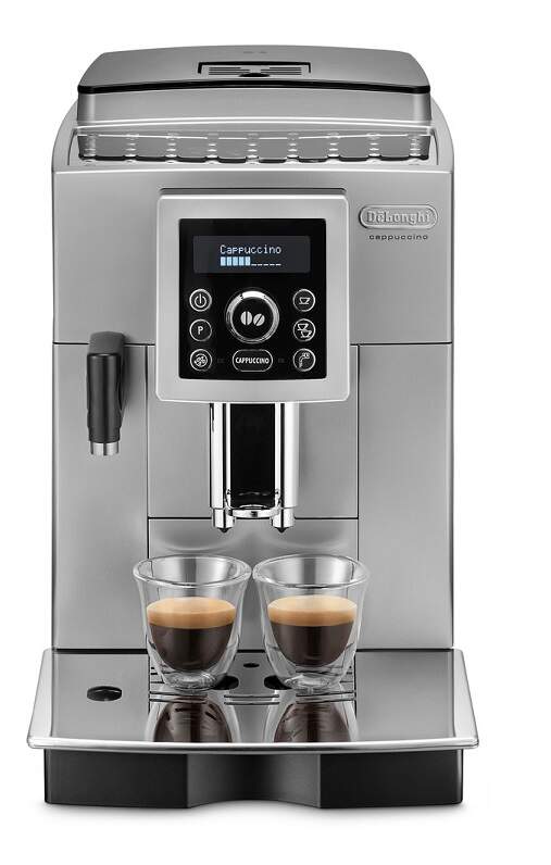 utomatické espresso De’Longhi ECAM 23.460SB na první pohled zaujme svým prémiovým designem a je navržen pro přípravu dokonalé kávy v pohodlí domova. Součástí je tichý mlýnek na kávu, kde si můžete nastavit až 13 stupňů hrubosti mletí. Zrnka kávy jsou uzavřena v nádobě se vzduchotěsným krytem, aby se zachovalo jejich syté aroma. Oblíbené cappuccino si připravíte jedním stiskem knoflíku “cappuccino”. Zásobník na vodu nabízí 1,8litrovou kapacitu a kapacita zásobníku na kávová zrna je 250 gramů. Příkon: 1 450 W. Barva: stříbrná.