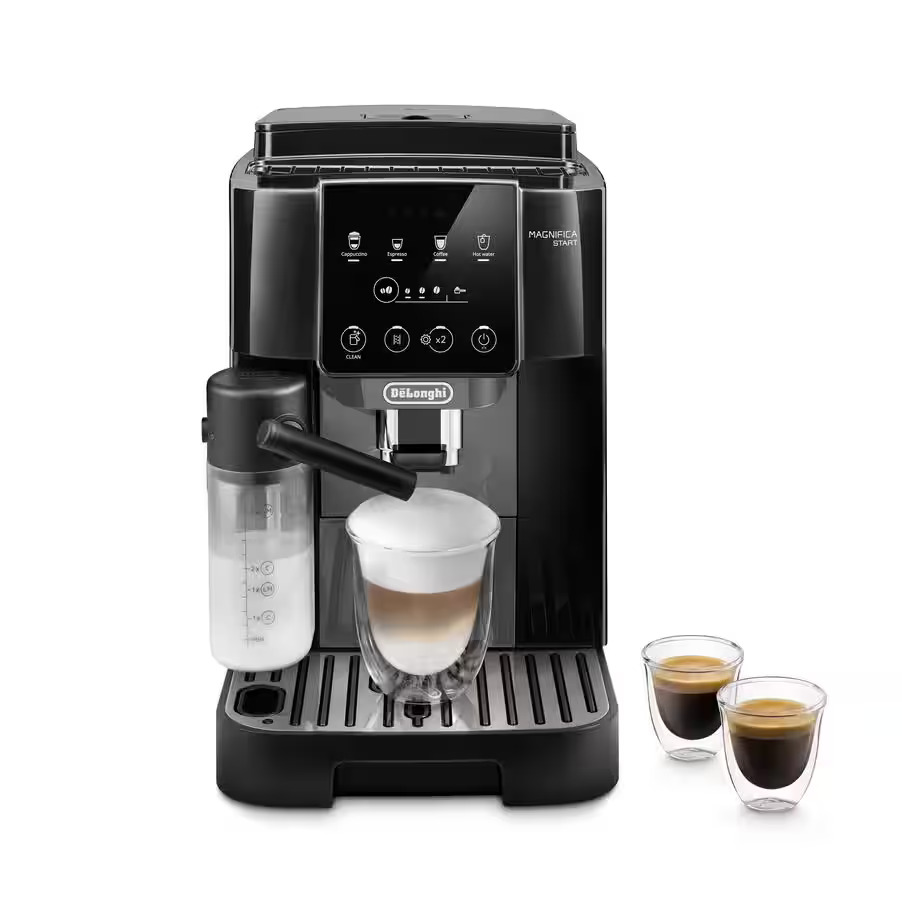 Vstupte do světa zrnkové kávy s kávovarem De’Longhi Magnifica Start, který vám poskytne vše, co potřebujete, abyste mohli začít připravovat své oblíbené domácí nápoje na bázi espressa. Je vybaven exkluzivní technologií LatteCrema Hot pro doplnění nápojů jemnou bohatou mléčnou pěnou a výběrem nápojů připravených jediným dotykem.