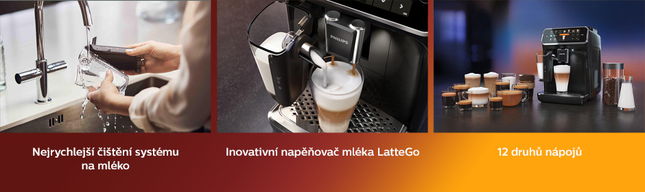 Sametově hebkou mléčnou pěnou dodá kávovým specialitám inovativní mléčné řešení LatteGo, které se snadno nastavuje a vyčistí za pouhých 15 sekund* (nejrychlejší čištění na trhu). Na intuitivním barevném TFT displeji jediným stisknutím tlačítka v pohodlí domova snadno připravíte své oblíbené kávové nápoje. Vybírat můžete z 12 lahodných nápojů, například espresso, černou kávu, cappuccino, flat white nebo latte macchiato. S velmi odolnými 100% keramickými mlýnky si vychutnáte vždy čerstvě umletou kávu, která si zachová své aroma a nápoji dodá jedinečnou chuť. Mlýnky umožňují zvolit hrubost mletí podle vašich preferencí. Patentovaný vodní filtr AquaClean zpomaluje tvorbu vodního kamene a umožní vám vychutnat si až 5 000 šálků bez nutnosti odvápnění.**