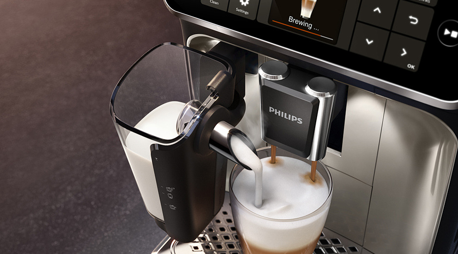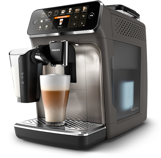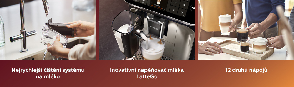 Sametově hebkou mléčnou pěnu dodá kávovým specialitám inovativní mléčné řešení LatteGo, které se snadno nastavuje a vyčistí za pouhých 15 sekund* (nejrychlejší čištění na trhu). Na intuitivním barevném TFT displeji jediným stisknutím tlačítka v pohodlí domova snadno připravíte své oblíbené kávové nápoje. Vybírat můžete z 12 lahodných nápojů, například espresso, černou kávu, cappuccino, café au lait nebo latte macchiato. S velmi odolnými 100% keramickými mlýnky si vychutnáte vždy čerstvě umletou kávu, která si zachová své aroma a nápoji dodá jedinečnou chuť. Mlýnky umožňují zvolit hrubost mletí podle vašich preferencí. Patentovaný vodní filtr AquaClean zpomaluje tvorbu vodního kamene a umožní vám vychutnat si až 5 000 šálků bez nutnosti odvápnění.**