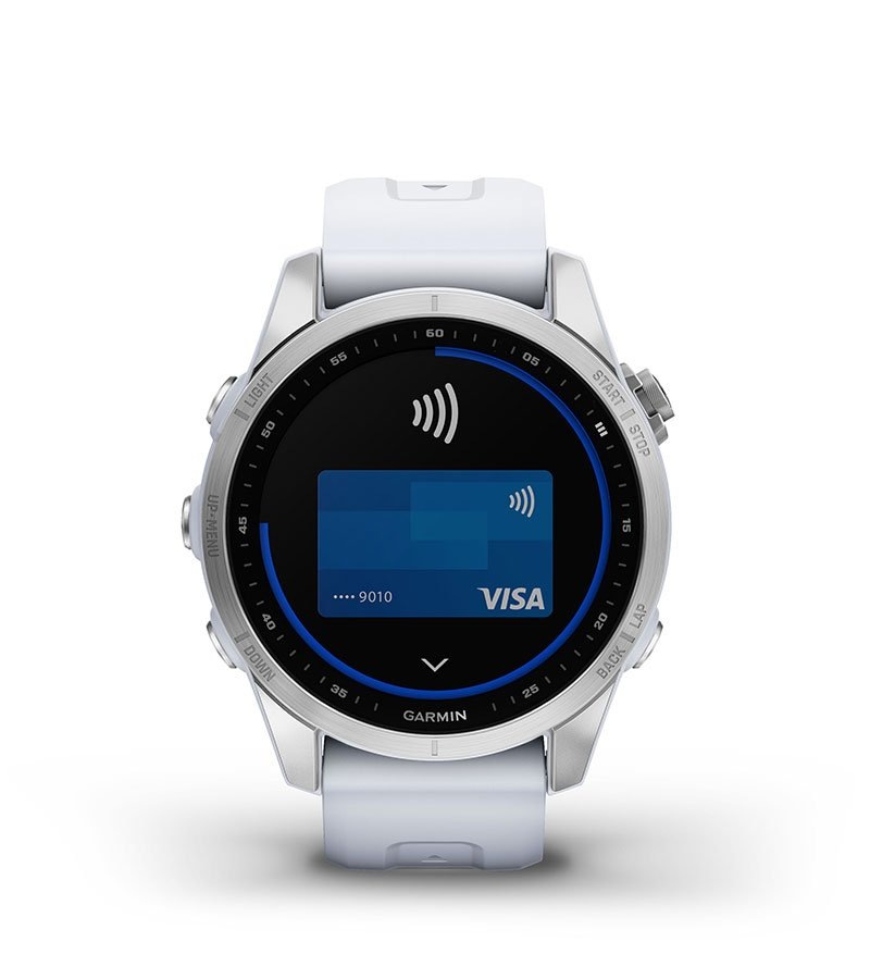 Integrovaná technologie Garmin Pay vám umožní bezdrátové platby přes hodinky. Služba Garmin Pay počítá s podporou nejrozšířenějších platebních karet typu VISA nebo MasterCard. V současné době navíc službu Garmin Pay podporuje již většina bank v ČR.