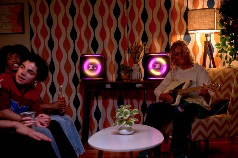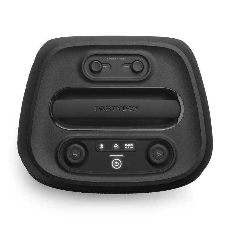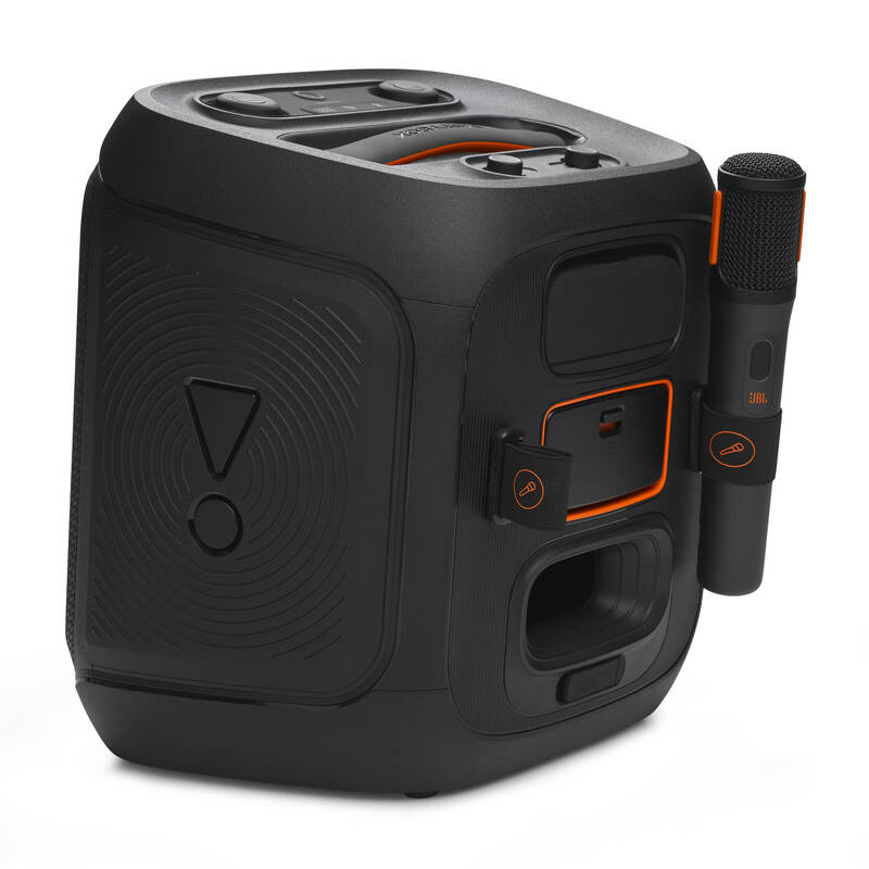 party reproduktor • výkon 100 W • napájení přes výměnný akumulátor • funkce KARAOKE – mikrofon v balení • odolnost IPX4 proti stříkající vodě • světelné efekty • AI Sound Boost • Auracast • aplikace JBL PartyBox • vyměnitelná baterie