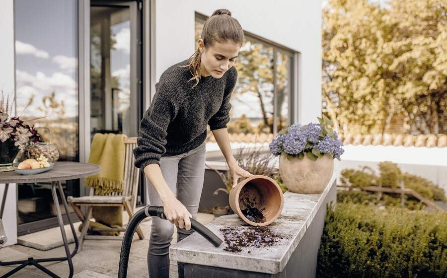 - Jednodílný kartušový filtr umožňuje vysávat mokré i suché nečistoty bez dodatečné výměny filtru.