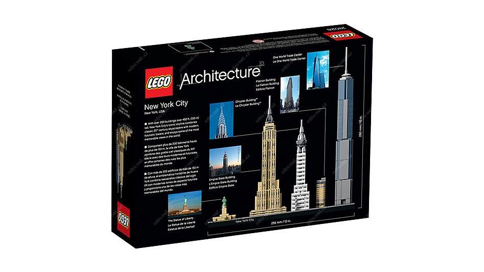 Oslav architektonickou rozmanitost města New York díky tomuto detailnímu LEGO® modelu z kostek. Panoramatická sbírka LEGO Architecture obsahuje modely, které jsou v hodné k vystavení doma nebo v kanceláři, a byla vyvinuta pro všechny, kdo mají rádi cestování, architekturu, historii a design. Každá sada má své měřítko, aby byla přesnou verzí každé z budov v menší velikosti, a má barvy, jako ve skutečnosti. Tato sada obsahuje budovu Flatiron, budovu Chrysler, Empire State Building, věž světového obchodního centra a sochu Svobody, a její součástí je také ozdobná cedulka s nápisem „New York“.