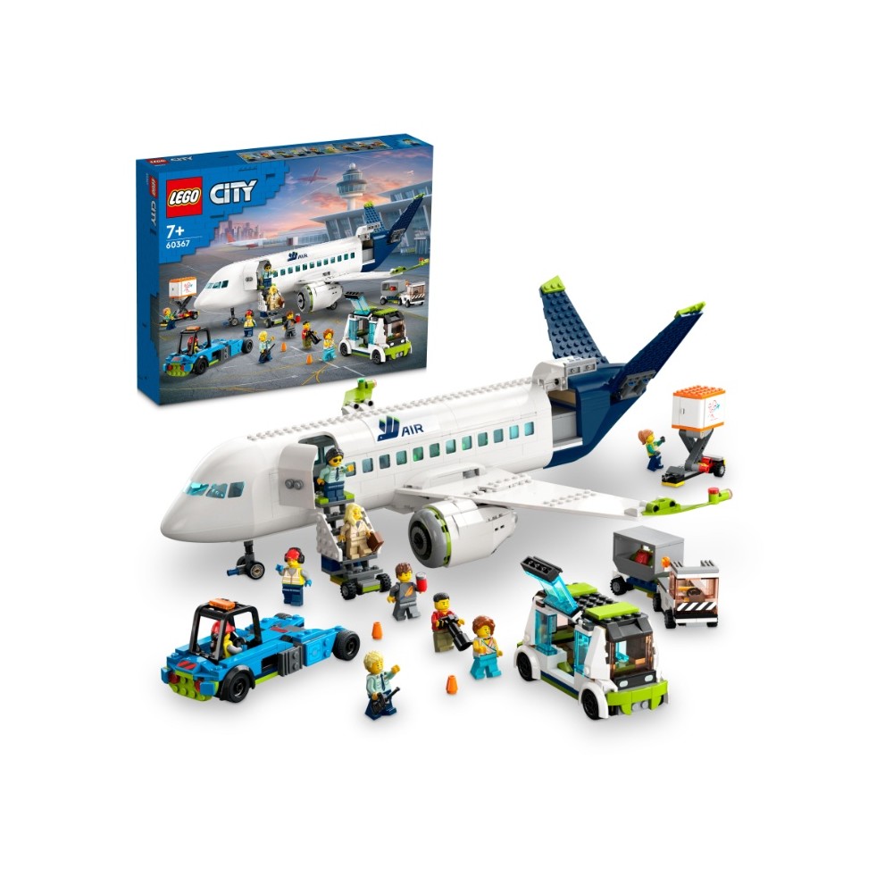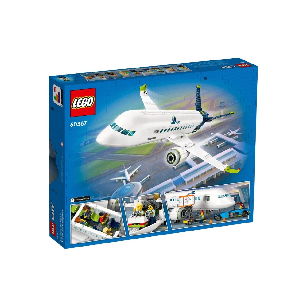 Krásný dárek pro fanoušky modelů letadel. Stavebnice LEGO® City (60367) Osobní letadlo je plná realistických detailů a funkcí. Elegantní model letadla se pyšní propracovaným interiérem s kokpitem, sedadly, uličkou a toaletou a nechybí ani schody k letadlu, letištní autobus, tahač letadel, vůz s občerstvením, zavazadlový vozík a 9 minifigurek.