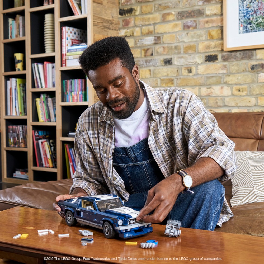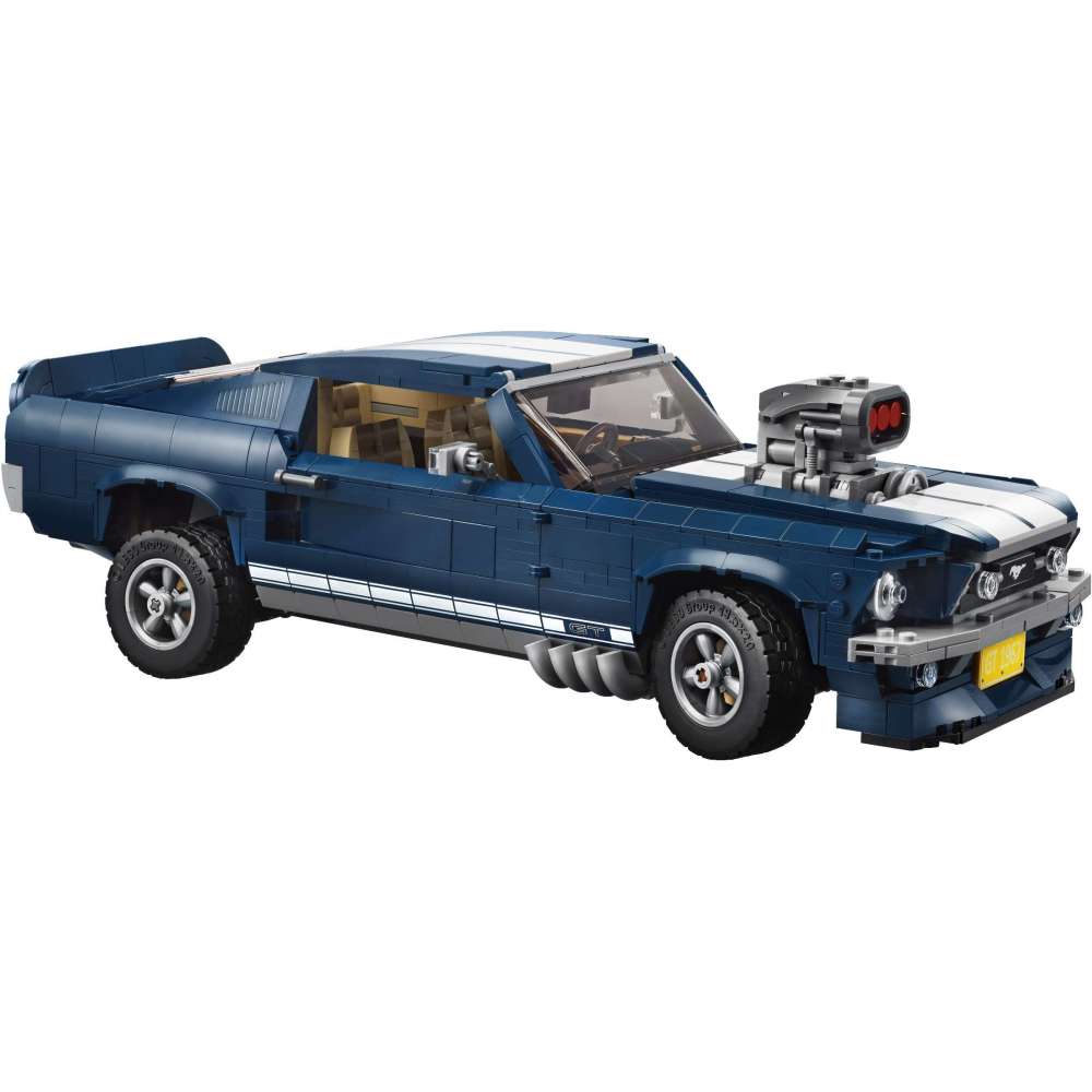 Objev kouzlo kultovního amerického auta 60. let s modelem Ford Mustang od LEGO® Creator, který nabízí tmavě modrou karoserii s bílými závodními pruhy, křídlem na kapotě, znakem mustanga natištěným na mřížce, znaky GT a 5paprskovými ráfky s přilnavými pneumatikami. Tato autentická replika, která byla vyvinuta s přispěním firmy Ford, nabízí volitelné doplňky pro vlastní úpravy, včetně výběru poznávacích značek, velkého kompresoru, zadního spoileru, mohutných výfuků, čelního spoileru a nádrže s oxidem dusným. Pokud chceš, aby auto vypadalo opravdu drsně, můžeš dokonce upravit zdvih zadní nápravy! Odstraň střešní panel nebo otevři dveře a získej přístup k propracovanému interiéru s pěknými sedačkami, rádiem, funkčním řízením a konzolí řadící páky. Ukládej různé věci do kufru nebo zvedni kapotu a prohlédni si velký propracovaný blokový motor 390 V8 s baterií, hadicemi a vzduchovým filtrem. Tato pokročilá stavebnice byla navržena tak, aby její skládání představovalo určitou výzvu a zároveň přinášelo obohacující kouzelný zážitek plný nostalgie. Model se bude skvěle vyjímat doma nebo v kanceláři.
