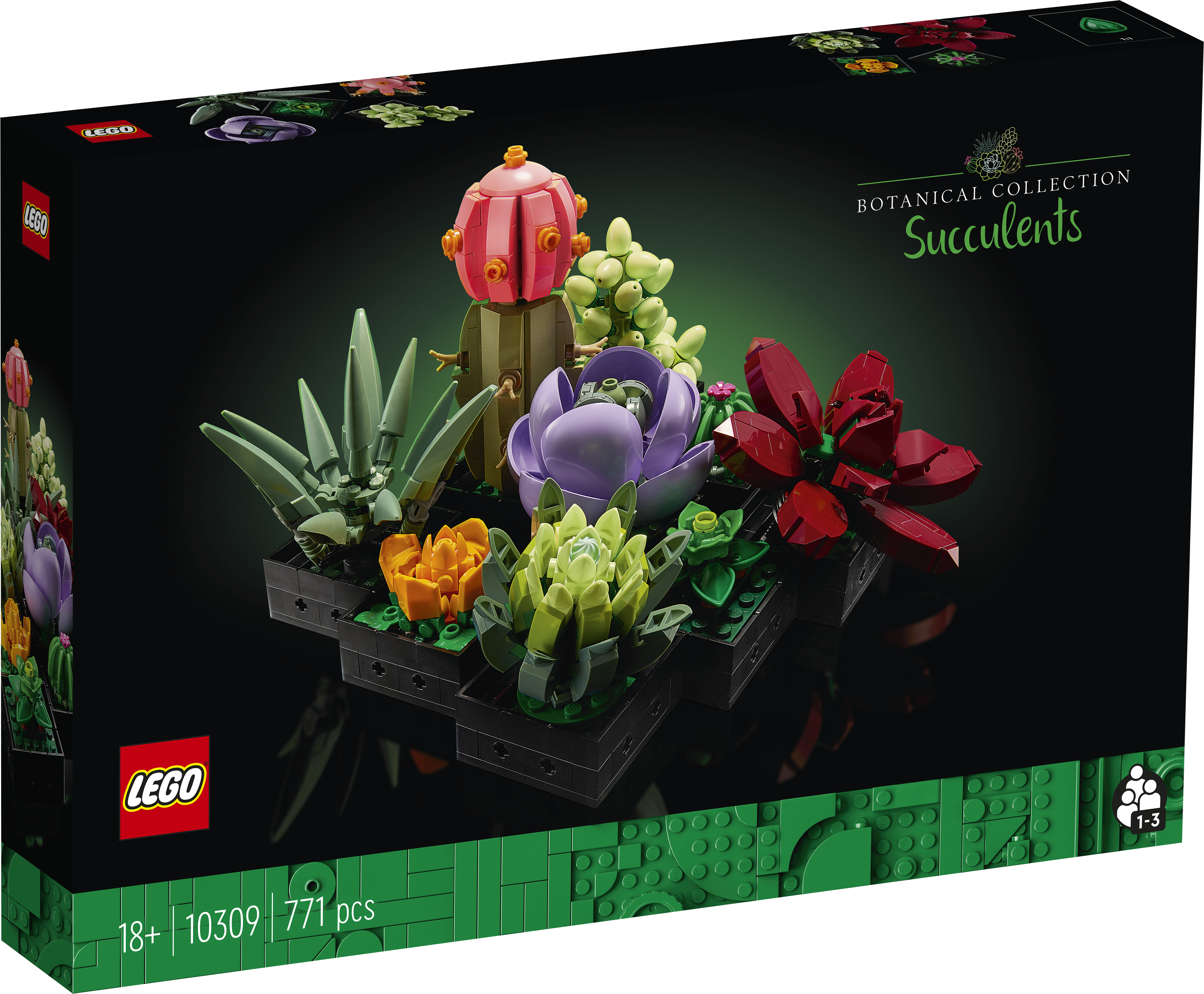 Sukulenty jsou často vstupenkou do světa pokojových rostlin, které zároveň v interiéru plní estetický účel. Nyní si můžete se stavebnicí LEGO® Sukulenty (10309) vychutnat jedinečný stavitelský projekt pro dospělé a postavit si elegantní výstavní model, který obohatí váš domov. Ponořte se do soustředěného stavění 9 různých detailně zpracovaných sukulentů inspirovaných skutečnými sukulentními rostlinami a pochlubte se dokonalým výsledkem své práce.