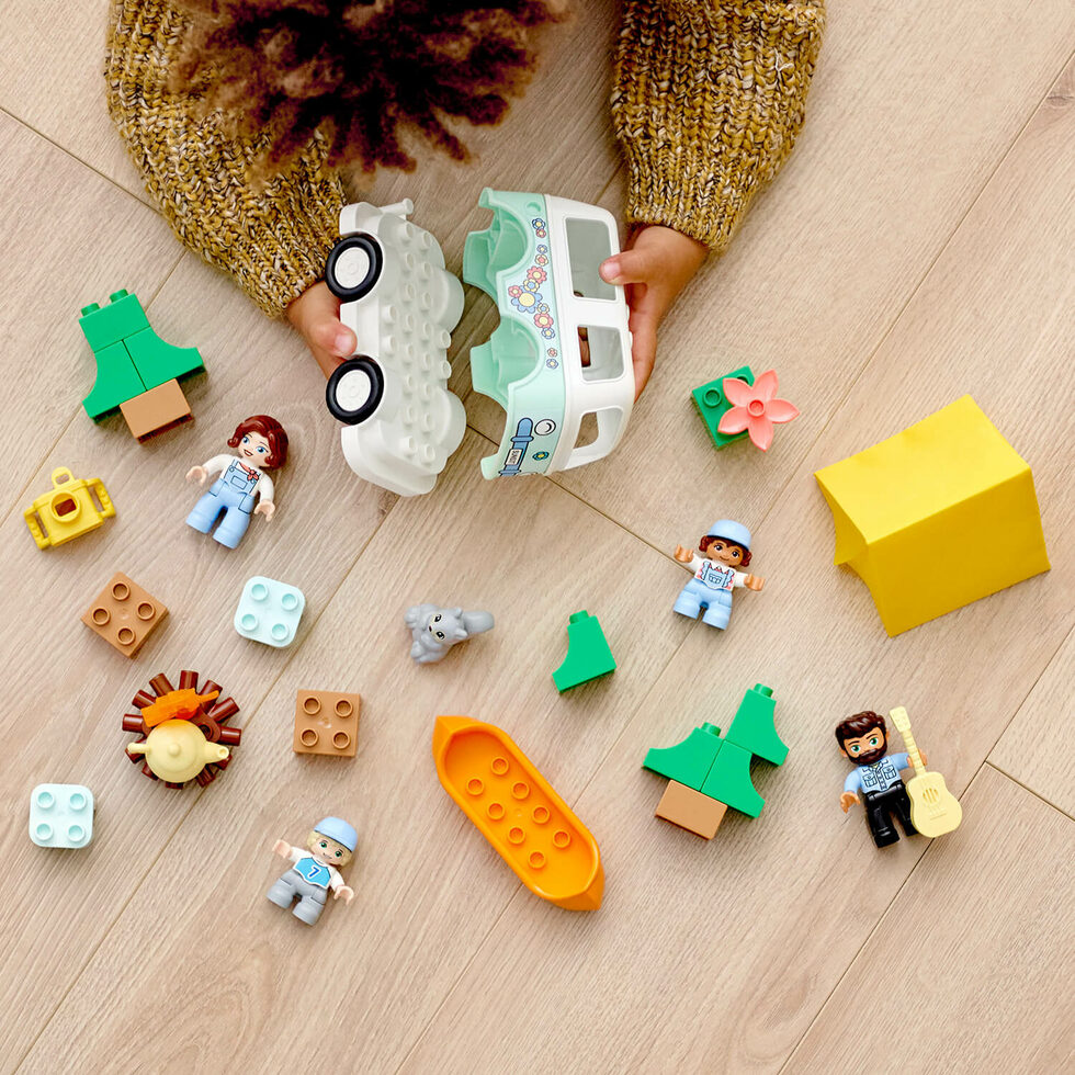 Dobrodružství v rodinném karavanu (10946) z řady LEGO® DUPLO® Město nabízí spoustu aktivit a příležitostí k učení, které si mohou děti užívat společně s rodiči.