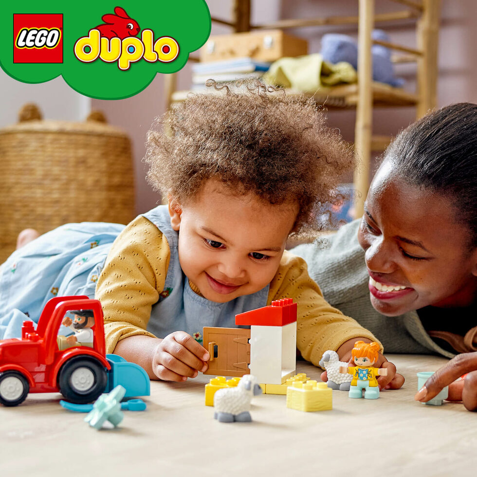 - Se sadou LEGO® DUPLO® Město: Traktor a zvířátka z farmy (10950) se děti, které milují vozidla a čtyřnohé kamarády, s nadšením pustí do řízení traktoru a starání o ovečky – při tom budou rozvíjet svou fantazii a zábavnou formou se dozví o světě.