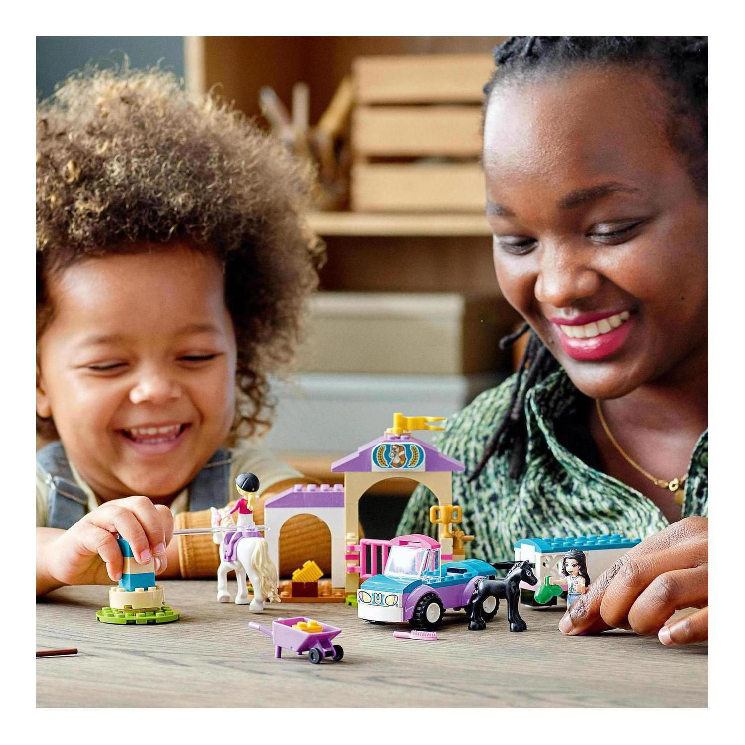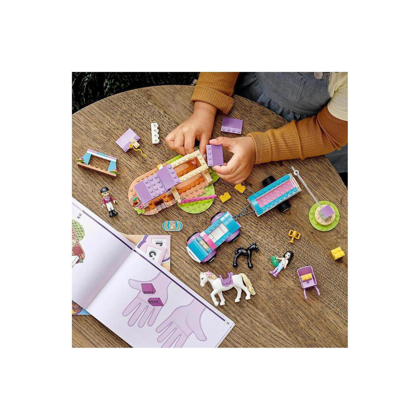 - Skvělá stavebnice Auto s přívěsem a výcvik koníka (41441) určená pro věkovou kategorii od 4 let naučí děti stavět a bavit se pečováním o zvířata. Obsahuje také modely auta a stájí.