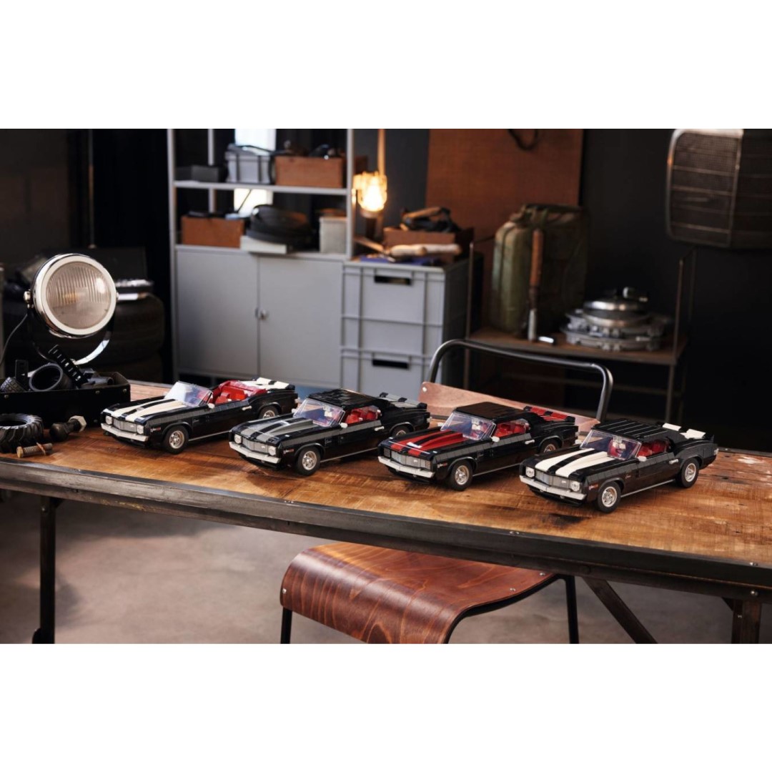Tento do detailu propracovaný sběratelský model LEGO® klasického vozu Chevrolet Camaro Z28 z roku 1969 nabízí celou řadu možností přizpůsobení podle vašich představ a vašeho vkusu. Přejete si verzi se střechou, nebo bez? Preferujete klasická, nebo skrytá čelní světla? Dáte přednost bílým, šedým nebo červeným závodním pruhům? Je to jen na vás.