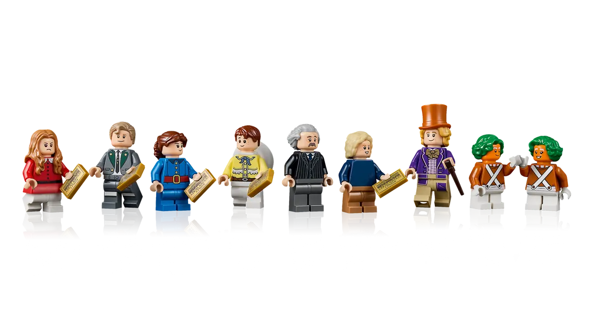 Součástí LEGO® 21360 Willy Wonka a továrna na čokoládu je 9 minifigurek: Willy Wonka, Charlie Bucket, dědeček Joe, Augustus Gloop, Mike Teavee, Veruca Salt, Violet Beauregarde a dva Oompa-Loompové. Každá postava je detailně zpracovaná a připravená k přehrávání scén z filmu nebo k vystavení vedle továrny. Minifigurky dodávají stavebnici osobitý šarm a sběratelskou hodnotu.