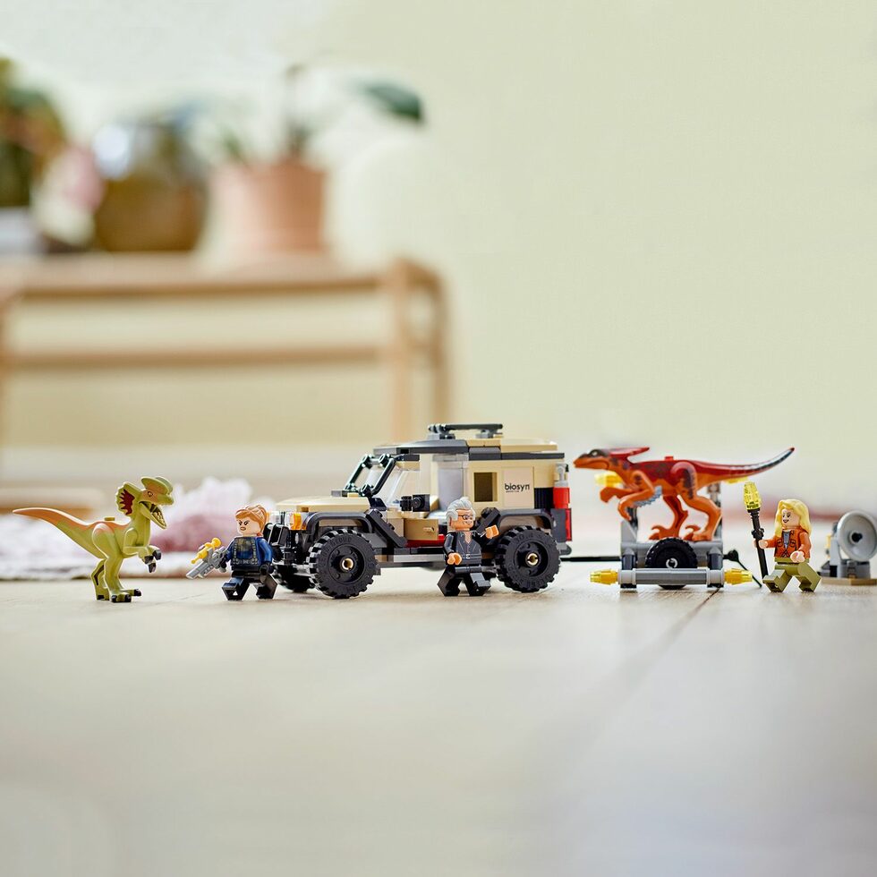 - Se stavebnicí Přeprava pyroraptora a dilophosaura (76951) si děti mohou hrát na pátrání po dinosaurech v terénním autě s postavami z filmu Jurský svět Nadvláda. Vozidlo nabízí místo pro 2 minifigurky, odnímatelné zařízení na stopování dinosaurů a odpojitelný přívěs s otevírací klecí, do které se vejde figurka dinosaura. Nesmí chybět ani 3 minifigurky LEGO® – Ian Malcolm, doktorka Ellie Sattlerová a strážce parku – a dvě dinosauří figurky pyroraptora a dilophosaura, se kterými děti prožijí nespočet nápaditých příběhů.
