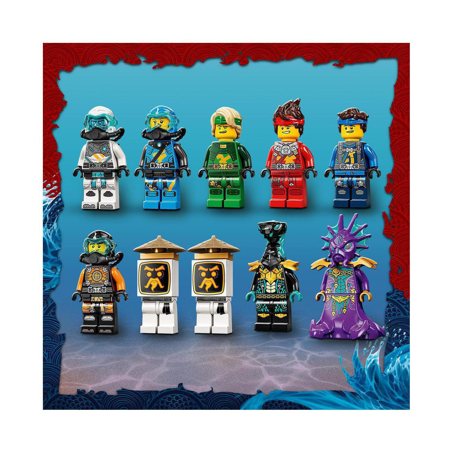 Stavebnice z podmořského prostředí obsahuje 10 působivých minifigurek: potápěče Kaie, potápěčku Nyu, potápěče Zanea, potápěče Jaye, potápěče Colea a potápěče Lloyda (všechny minifigurky na sobě mají ploutve, potápěčský oblek a drží v rukou zbraně), proti nimž stane čtveřice padouchů tvořená princem Kalmaarem, strážcem Maaray a 2 Wu Boty.
