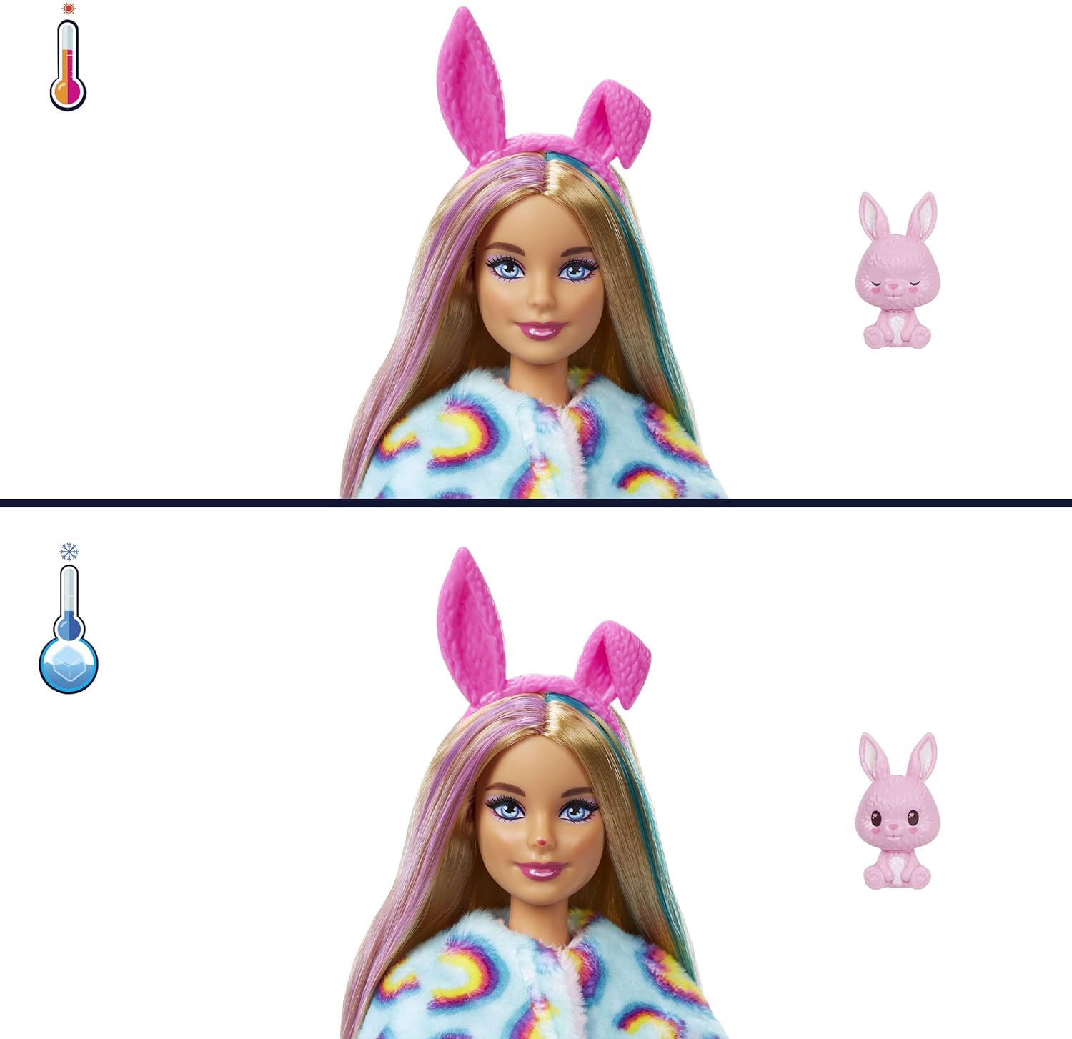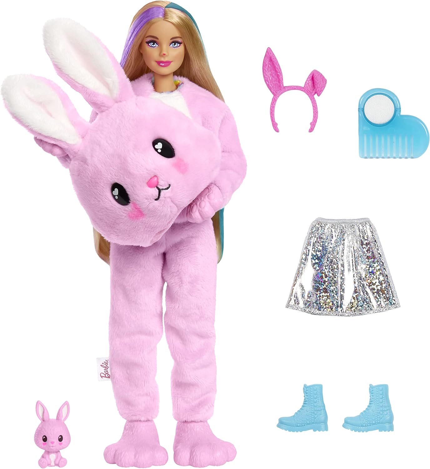 - Otevři krabici a odhal měkkého, plyšového králíčka, který pod kostýmem skrývá panenku Barbie.