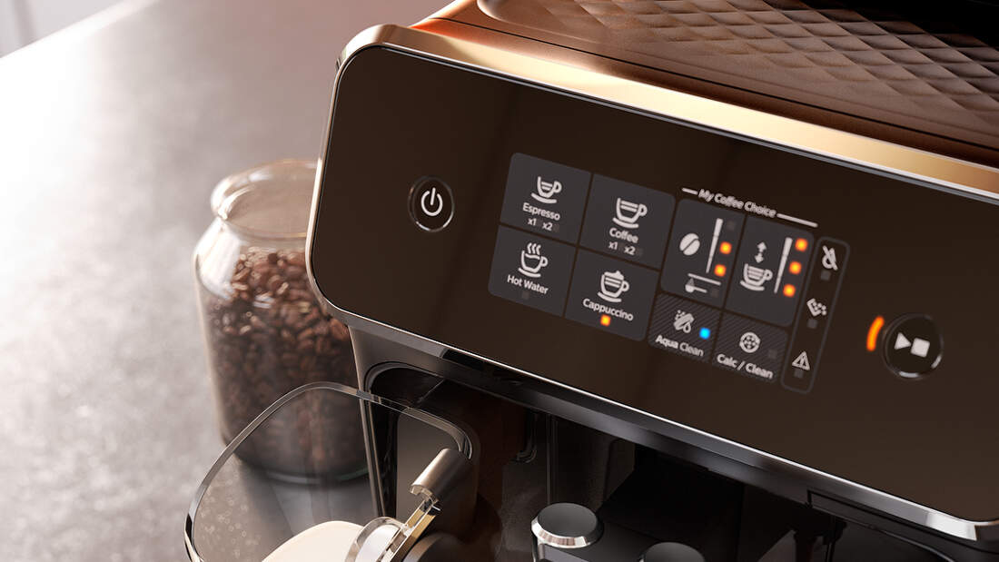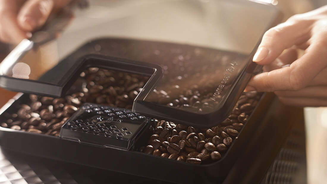 Stačí stisknout jediné tlačítko a neodolatelnou chuť a aroma kávy z čerstvých zrn si můžete dopřát během okamžiku. Kávový nápoj, který máte rádi, si snadno vyberete na intuitivním ovládacím panelu.