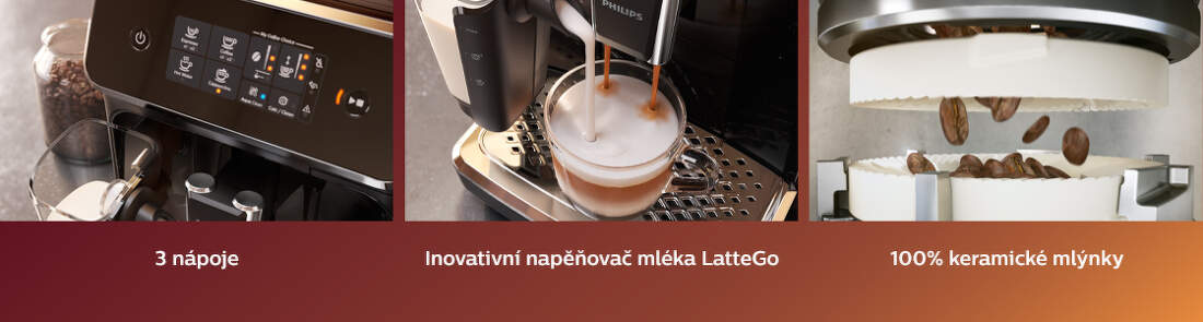 - 3 druhy kávových nápojů včetně cappuccina jedním stisknutím tlačítka
