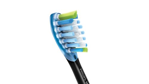 Kartáčková hlavice C3 Premium Plaque Control je navržena tak, aby vám zajistila dosud nejhlubší vyčištění. Měkké flexibilní strany a vlákna dokonale kopírují obrysy vašich zubů, poskytují 4x větší kontakt s povrchem a pomáhají zacílit na těžko dostupná místa***