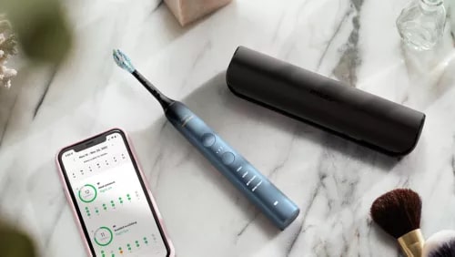 Kartáček DiamondClean 9000 vám poskytne pokyny, které potřebujete ke zlepšení a udržení zdravých návyků při čištění zubů mezi pravidelnými kontrolami u zubaře. Integrované inteligentní snímače vám umožní zjistit, kdy používáte příliš velký tlak, a díky tomu, že při čištění máte připojení k aplikaci Sonicare, vám osobní zpráva o průběhu pomůže udržet si přehled a zjistit, nakolik jste se v průběhu času zlepšili.