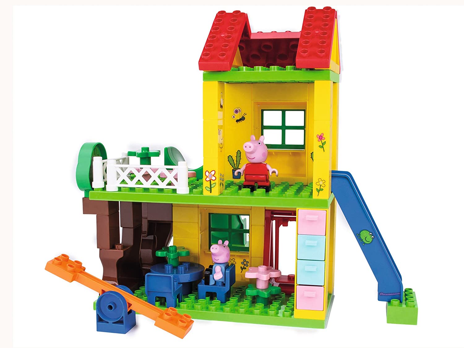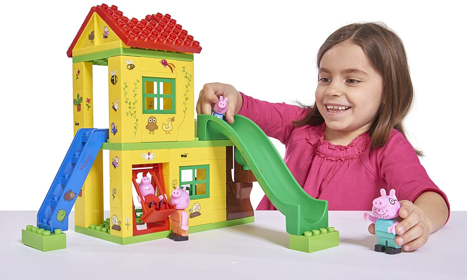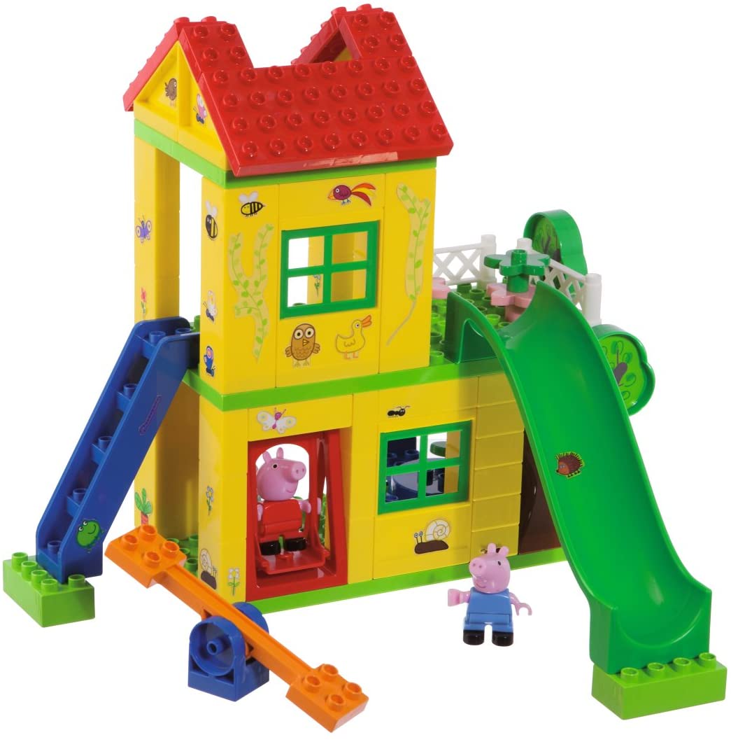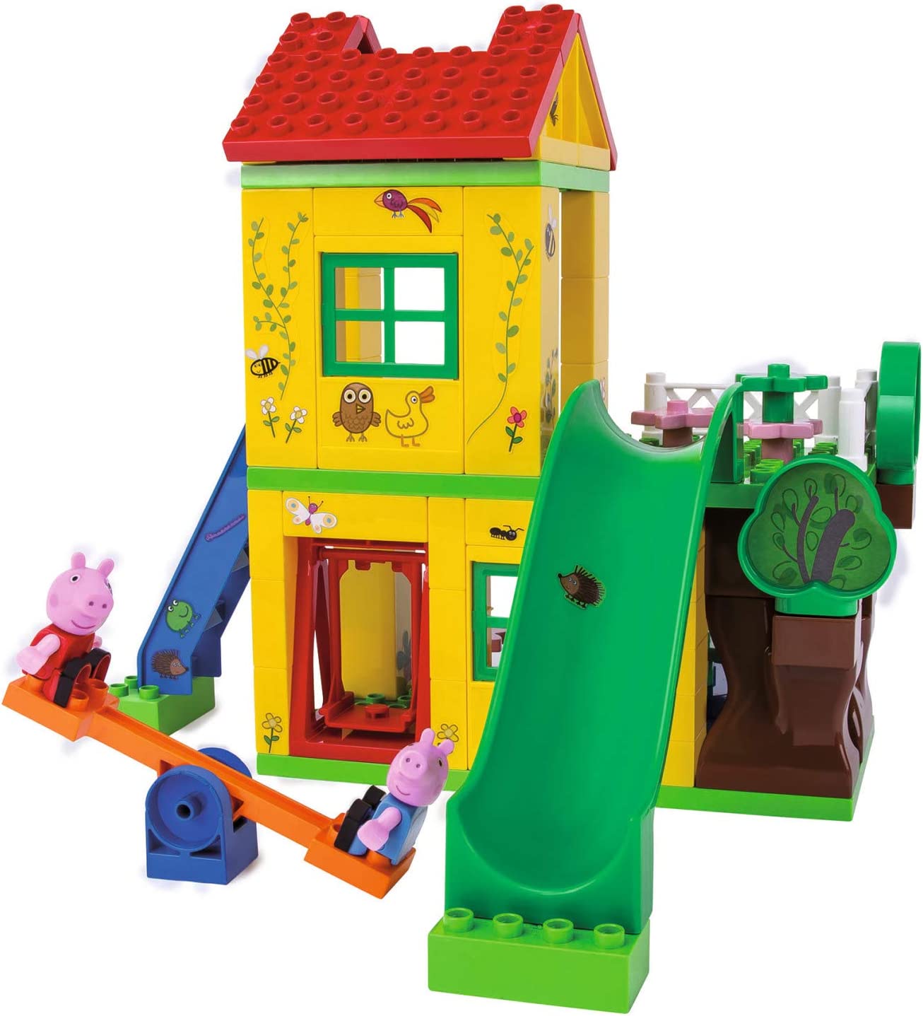 Dvoupatrový domeček z oblíbené stavebnice PlayBig Bloxx v licenci Peppa Pig. Nechybí skluzavka ani houpačka. Stavebnice obsahuje i 2 figurky a 73 dílků.