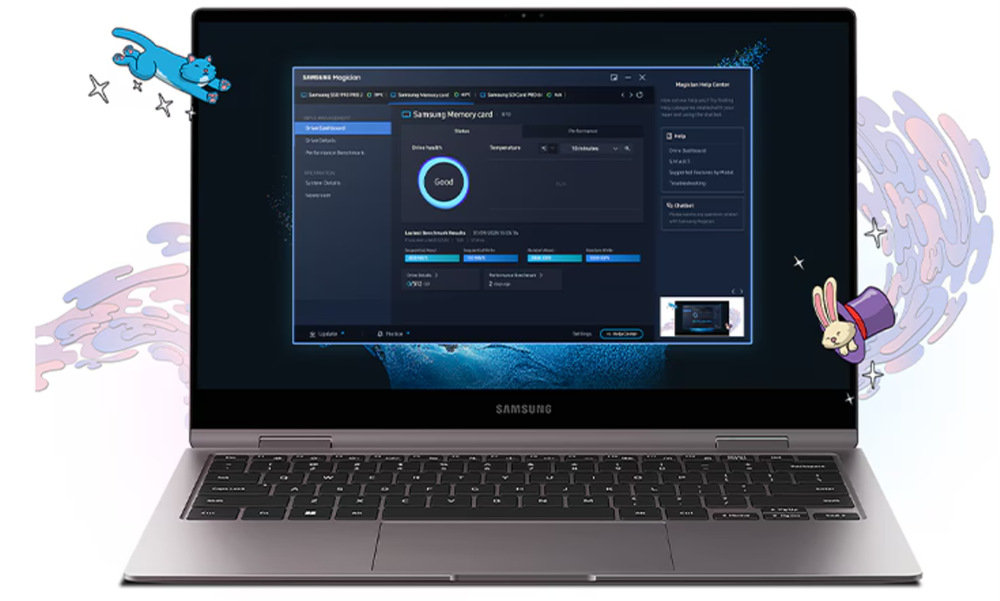 Pomocí softwaru Samsung Magician si upravíte výkon karty podle vlastních potřeb. S touto přehlednou a pohodlnou sadou nástrojů pro správu snadno upravíte výkon, ověříte pravost, můžete provádět test výkonu a mnoho dalšího. Software si rozumí s operačním systémem Windows 10 a novějším, macOS X 10.13 a novějším či Android 5.1 a novějším.