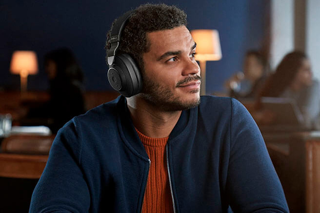 sluchátka přes hlavu • funkce SmartSound • inteligentní potlačení šumu ANC • bezdrátový provoz (36 hod s ANC) • funkce handsfree • podpora hlasového ovládání • odolnost proti dešti • automatické přehrávání a pozastavení • aplikace Jabra Sound+