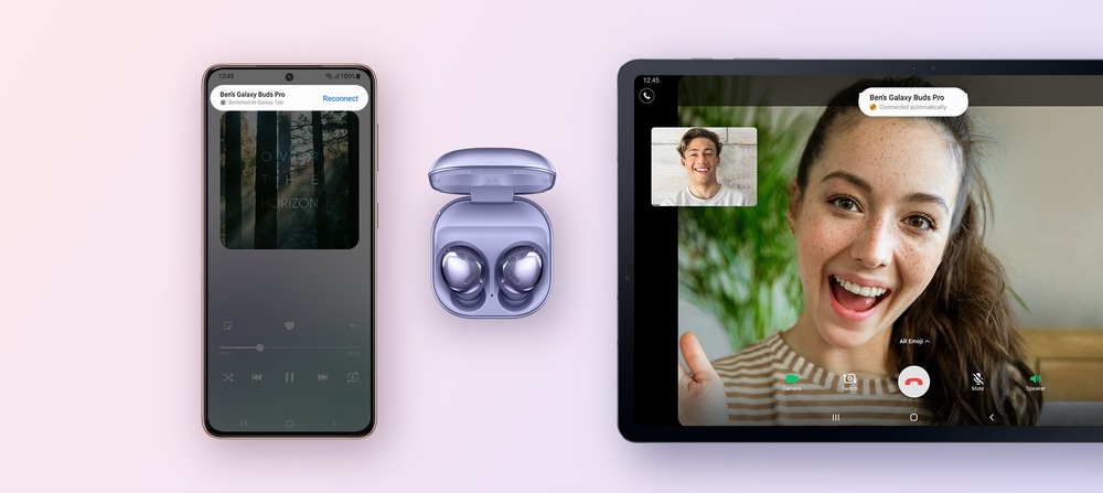 Sluchátka Galaxy Buds Pro od společnosti Samsung rozpoznávají více zařízení, ke kterým jsou připojena, a dokážou mezi nimi inteligentně přepínat. Pokud vám tedy při sledování filmu na tabletu zazvoní telefon, Buds Pro okamžitě přepnou zvuk na váš hovor. Po jeho skončení se audio zase automaticky vrátí na sledovaný film.