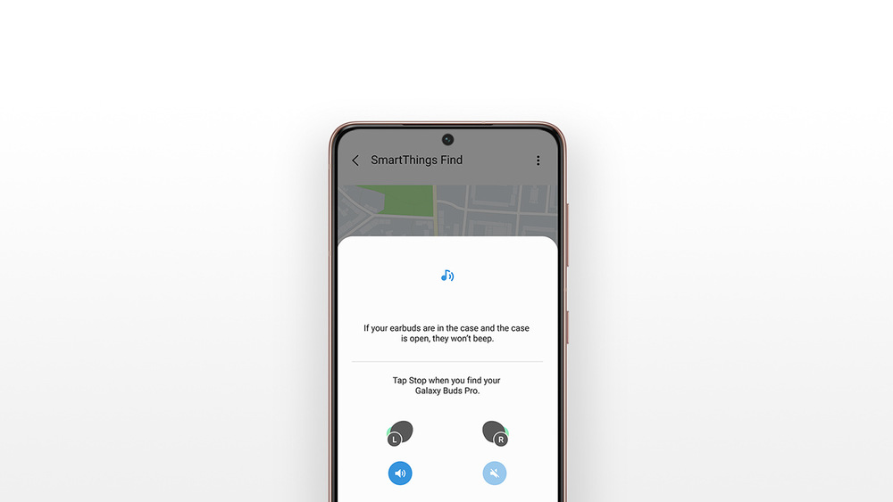 Už se nemusíte bát, že těsně před odchodem z domu nebudete moci najít svá sluchátka. Galaxy Buds Pro spolupracují s aplikací SmartThings, a pokud se vám ztratí z dohledu, můžete je nechat pípnout, abyste je v okamžiku našli. I v případě, že už nejsou připojena k telefonu, můžete alespoň vystopovat poslední místo, kde jste je používali.